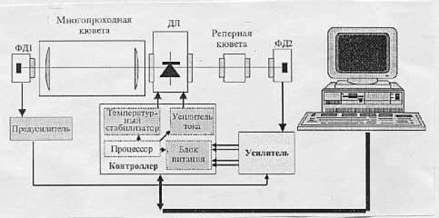 An uncooled variant of a high-sensitive laser spectroscopic gas analyser is developed. Analitic lines based on combination pound frequencies are used for gas detection. Photodetectors and laser diodes for near 1,7 microns IR-range were used. Application of this devise in medicine (making early diagnosis of internal organs deseases) is most perpective one.
