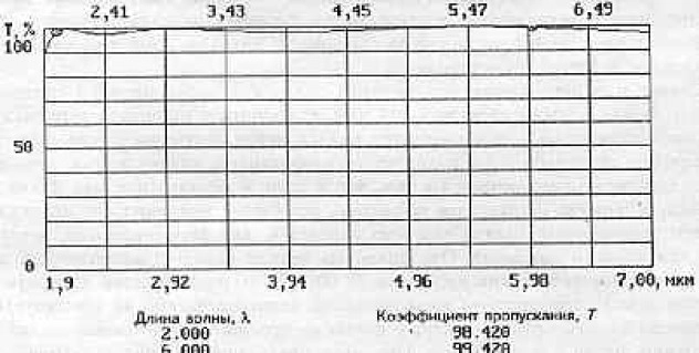 Рис. 2. Спектральное пропускание просветленной германиевой подложки.