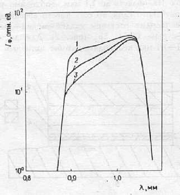 С целью расширения спектрального диапазона чувствительности в длинноволновую область спектра велись работы по получению эпитаксиальных слоев твердых растворов галлий арсенид - индий арсенид на подложках GaAs. Для получения красной границы спектра на уровне 1,06-1,1 мкм состав твердого раствора InxGa1-xAsх должен быть равен 0,18. При этом расхождение по величине постоянной решетки а (In0,18Ga0,82)As с a (GaAs) слишком велика, чтобы выросли слои с хорошей морфологией. Поэтому применялся в этом случае ЖФЭ буферный слой и растили более сложную структуру GaAs (подложка) - Ga1-yInyP - Ga1-xInxAs.